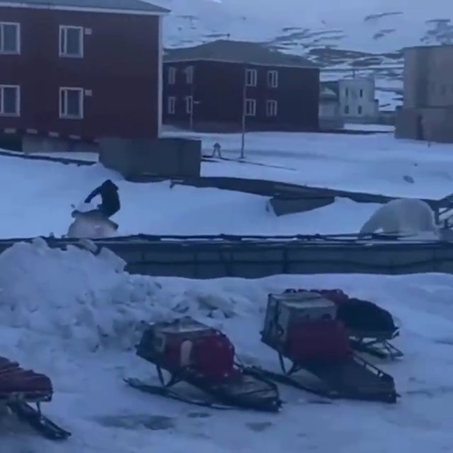 Un video scioccante mostra un uomo che corre disperatamente per sfuggire a un orso polare in un villaggio canadese.