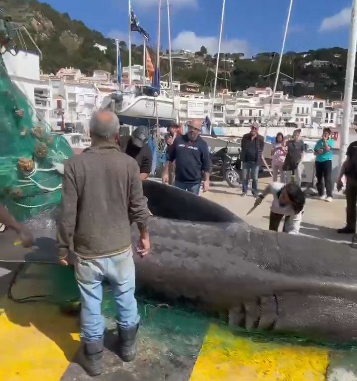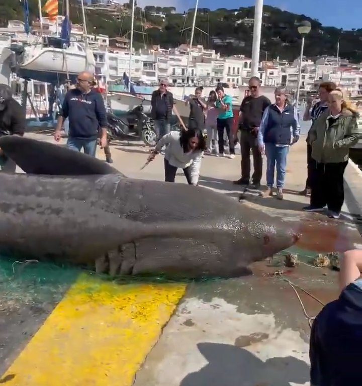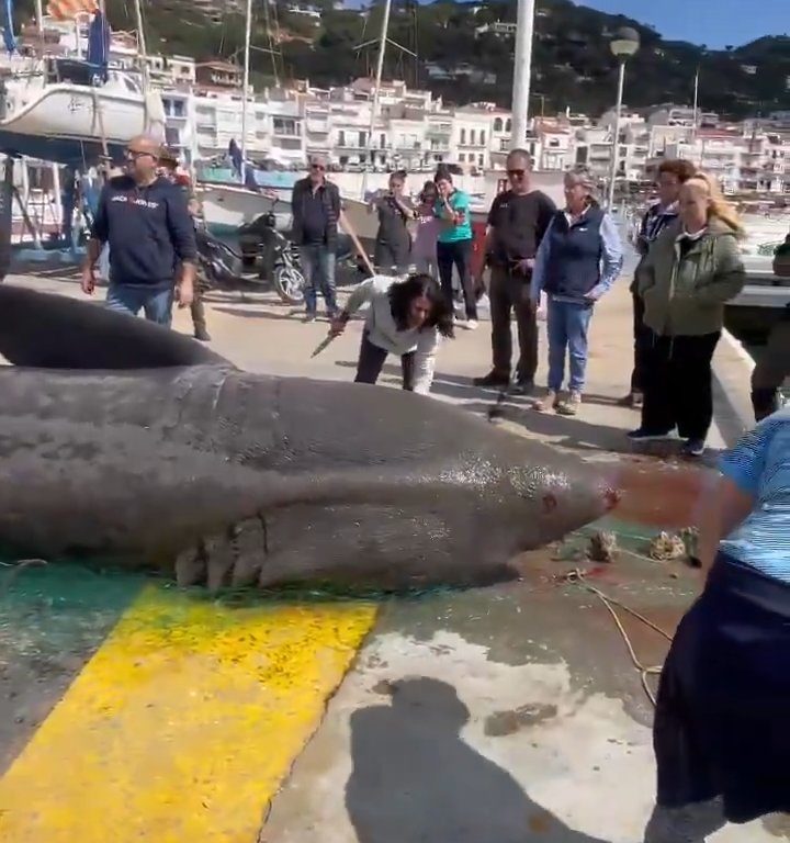 Der Riesenhai, wie die Die Sonne, wäre bei einem normalen Angelausflug im Netz verfangen. Der rechtzeitige Anruf bei der Polizei blieb erfolglos. CRAM-Stiftung, das sich mit dem Schutz der Meeresfauna beschäftigt. Als Hilfe im Hafen eintraf, war es für das Tier bereits zu spät.
