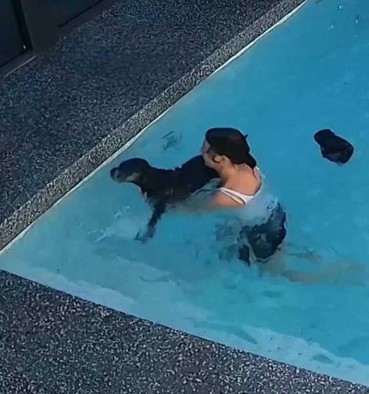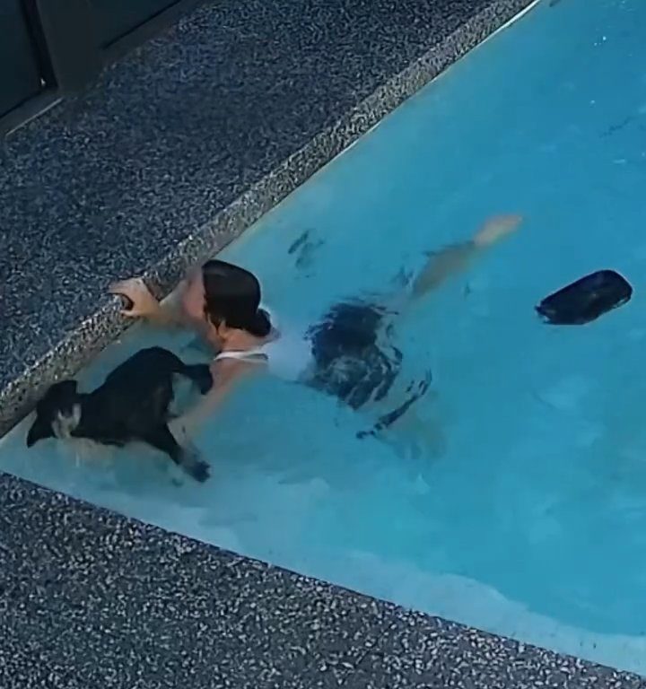 Un chien ne sait pas nager et finit dans la piscine : le sauvetage de son propriétaire est effrayant